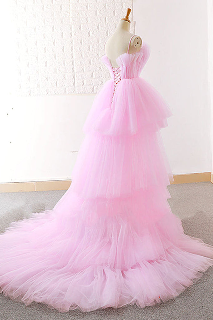 Gorgeous High Low Pink Tulle Long Prom Dresses, Pink Tulle Formal Graduation Evening Dresses EP1788