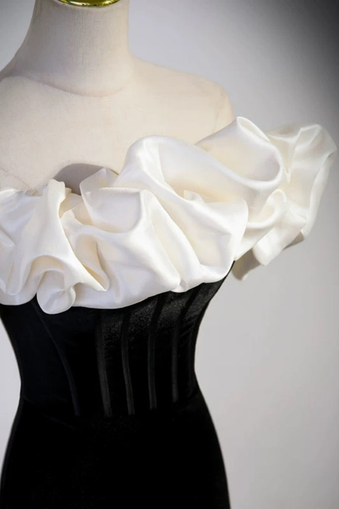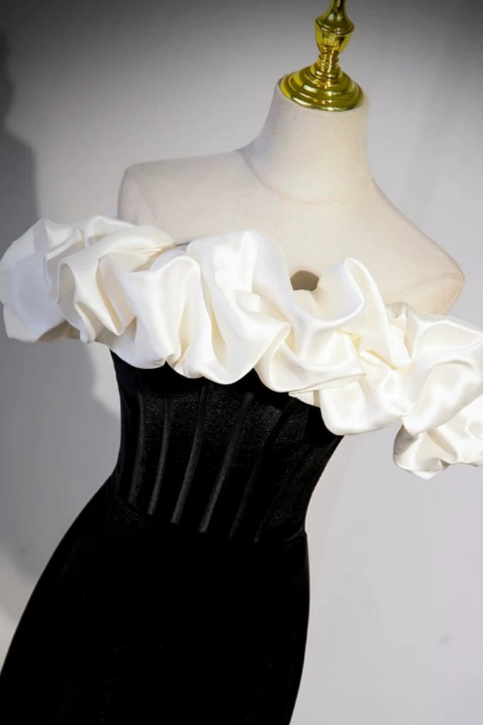 Off the Shoulder Black White Long Mermaid Prom Dresses, Long Mermaid Formal Evening Dresses