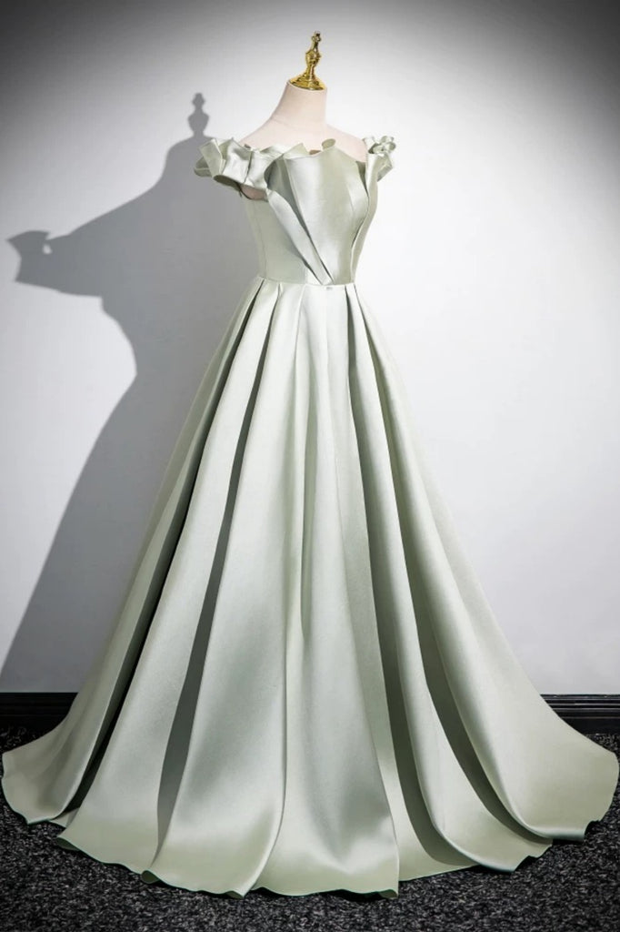 Off the Shoulder Sage Green Long Prom Dresses, Off Shoulder Sage Green Formal Evening Dresses