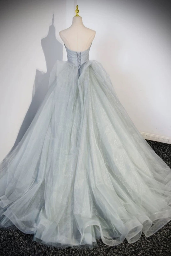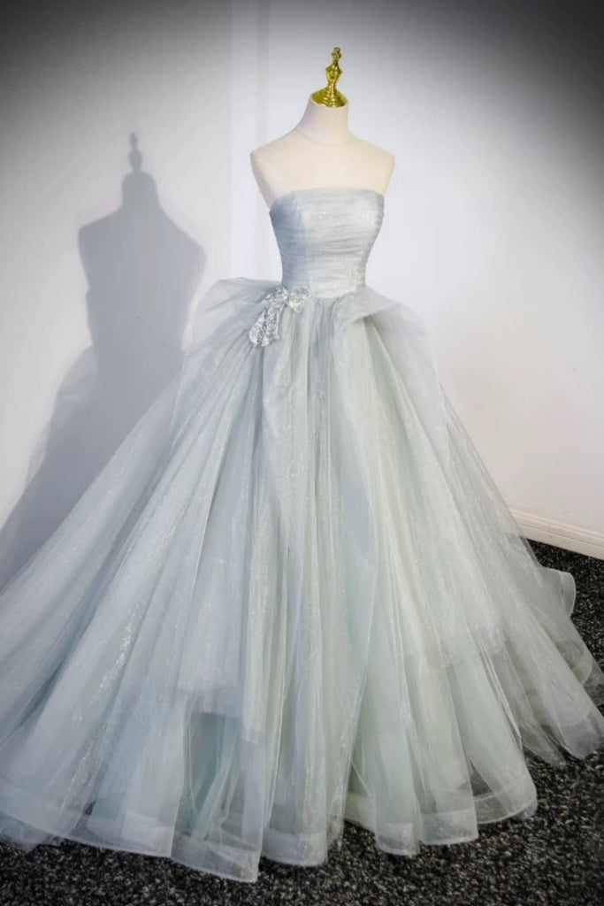 Off the Shoulder Silver Gray Tulle Long Prom Dresses, Silver Gray Tulle Long Formal Evening Dresses
