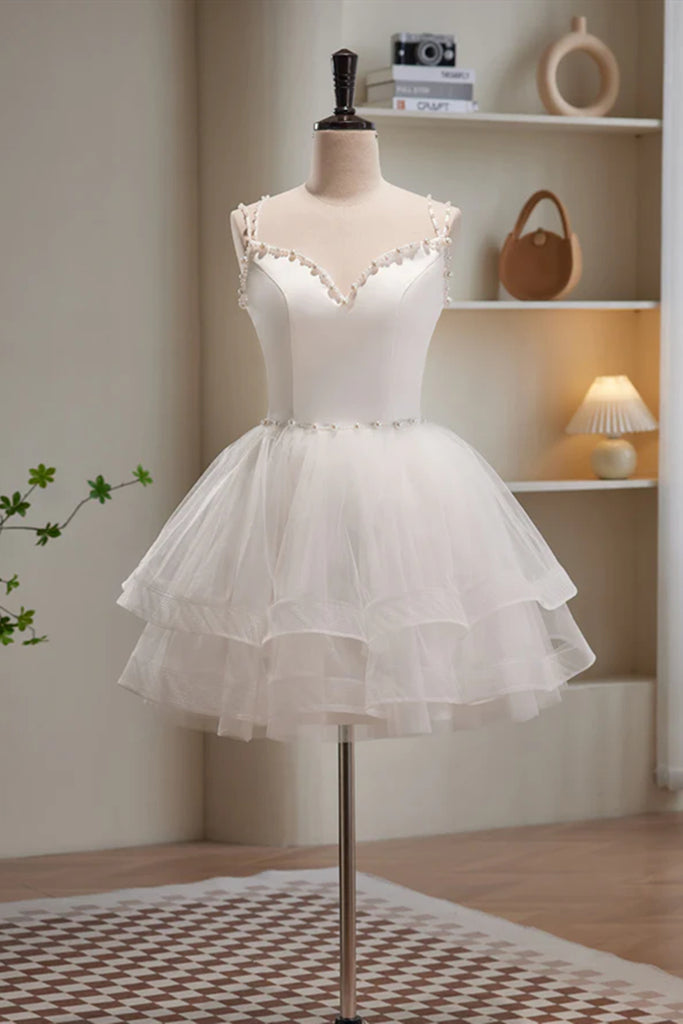 Short V Neck White Prom Dresses, Short V Neck White Formal Homecoming Dresses