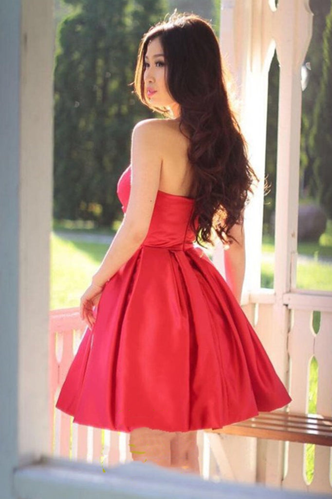Sweetheart Neck Short Red Prom Dresses, Short Red Satin Graduation Homecoming Dresses